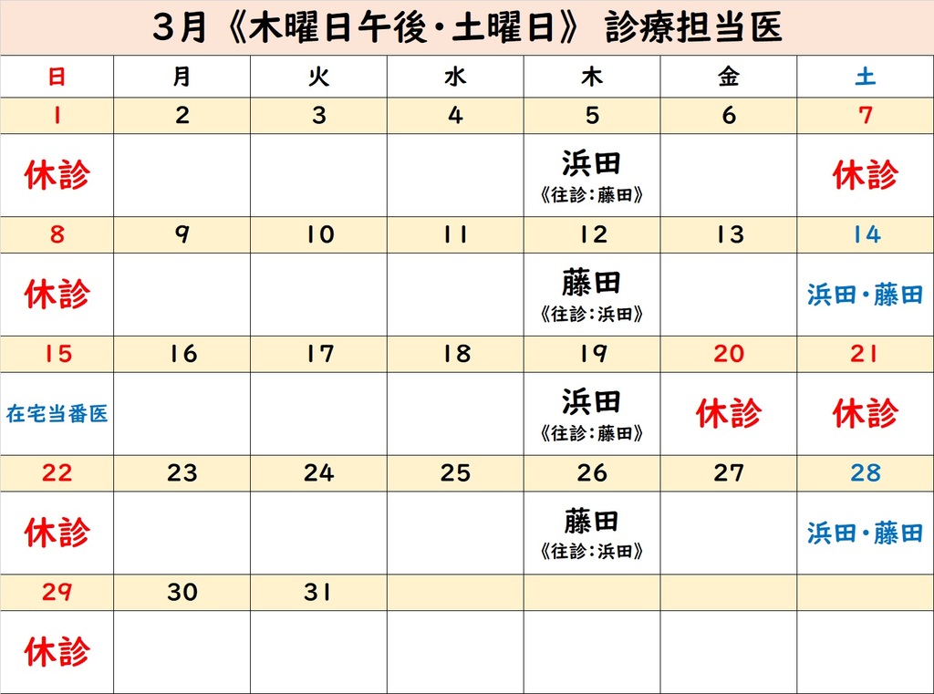 3月の診療担当医について